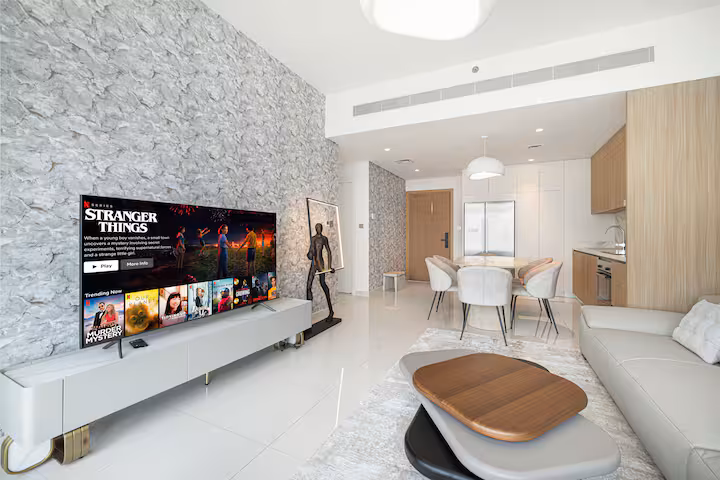 Kick back and relax in this calm, stylish space. With your private beach at your footsteps. Enjoy life at the trendy Dubai harbour only minutes away from the Dubai Marina and iconic JBR walk. The space Kick back and relax in this calm, stylish 2-bedroom retreat—perfect for families, friends, or couples traveling together. Step outside and enjoy direct access to your private beach, just steps from your door. Unwind in comfort as you soak up the sun, or explore the vibrant surroundings of trendy Dubai Harbour. With Dubai Marina and the iconic JBR Walk only minutes away, you’re never far from world-class dining, shopping, and entertainment. Whether you're looking for a peaceful escape or a stylish base to explore the city, this beachfront haven offers the best of both worlds.